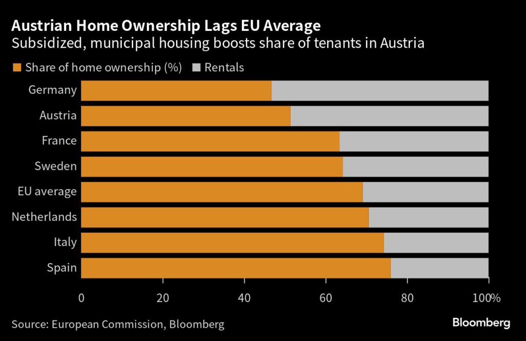 The Austrian measure applies to regulated and subsidized rental homes in a country that traditionally has one of the highest shares of renters in the European Union.