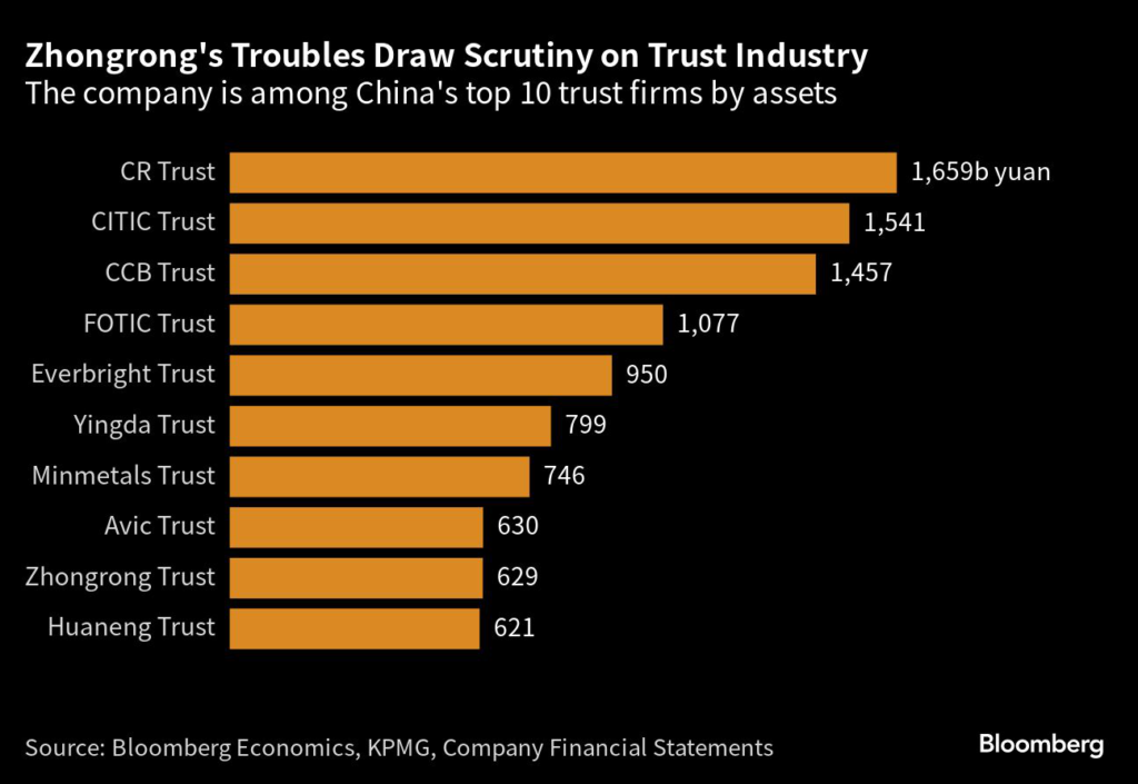 China’s trust industry is a key alternative funding source for weaker borrowers unable to get regular bank loans such as real estate developers and local government financing vehicles.
