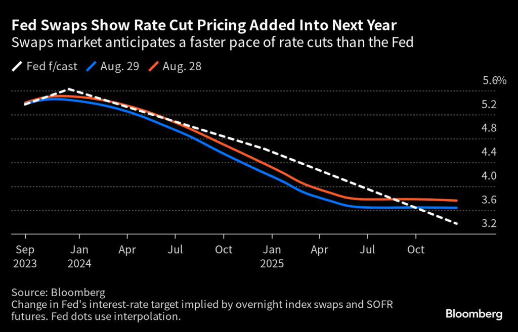 In late trading, software company Salesforce Inc. climbed on a bullish outlook. Treasury yields edged lower. Swap contracts priced in less than a 50% chance of another quarter-point US rate increase this year.
