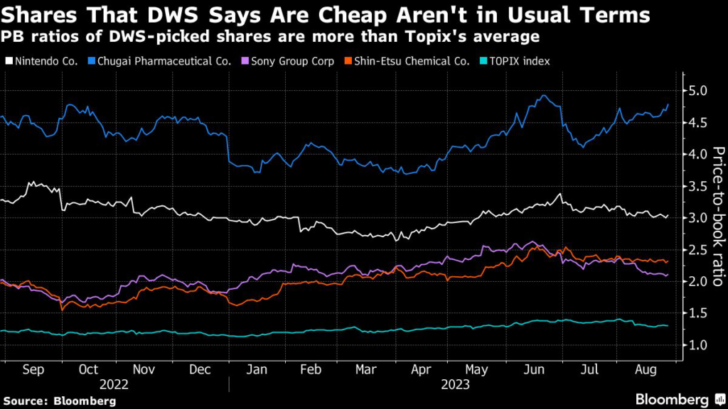 (Bloomberg) — Despite Japan’s share market rally to a three-decade high in August, many big-name stocks remain cheap based on unconventional analysis used by a Deutsche Bank AG unit.