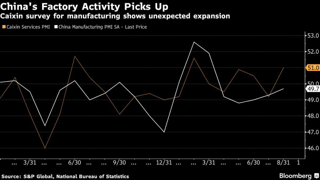 (Bloomberg) — A private survey of China’s manufacturing activity unexpectedly expanded in August, adding to encouraging signs that the slump in factories may be near an end.