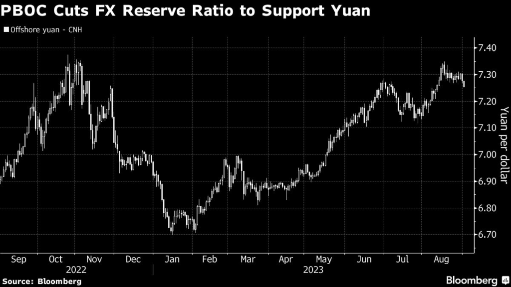 (Bloomberg) — China moved to support the yuan by increasing the supply of foreign currency in its local market, part of a multi-pronged effort by Beijing to restore confidence amid sluggish growth.