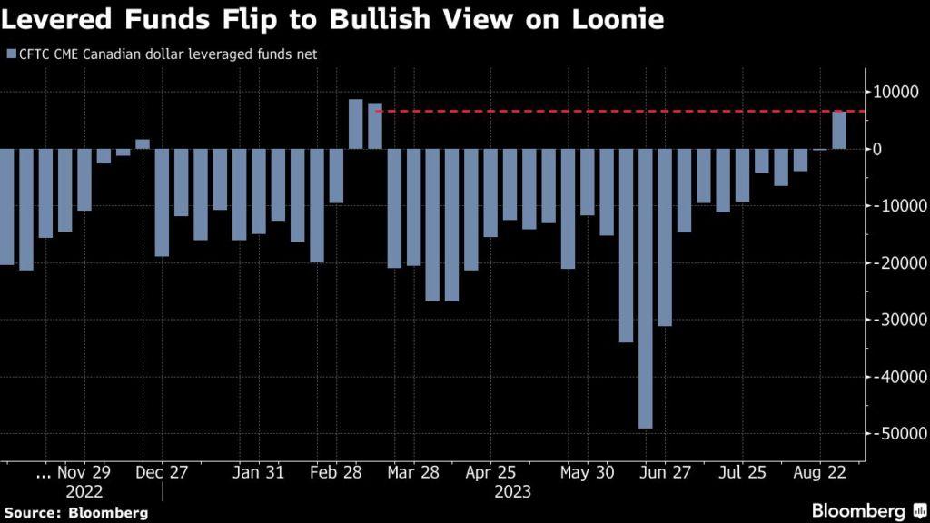 Leveraged funds shifted to a bullish view on the Canadian dollar for the first time since March, according to weekly Commodity Futures Trading Commission data through Aug. 29.