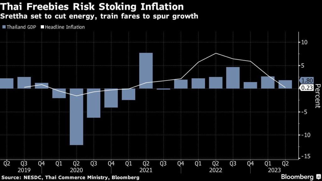 (Bloomberg) — Thailand’s new government plans to cut energy prices and city-train fares and temporarily suspend debt repayment by farmers as part of a raft of measures to ease the cost of living and spur investment in Southeast Asia’s second-largest economy.