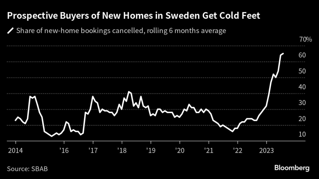 (Bloomberg) — Swedes are increasingly pulling out of reservations to buy new-build homes as the housing market has cooled rapidly and demand for new developments dwindles.