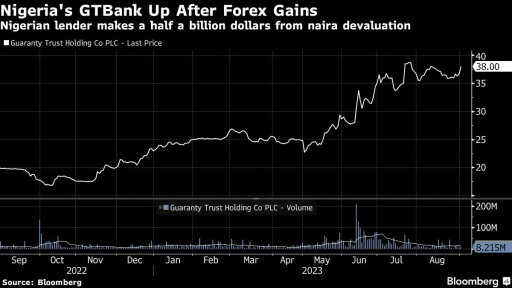 The firm, which operates Guaranty Trust Bank, reported 357.5 billion naira ($468 million) in foreign-exchange gains for the six months to June 30, according to a regulatory filing.