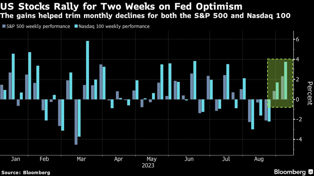 The S&P 500 advanced in the past two weeks, although it still ended August with its first monthly decline since February. The focus Friday is on the Labor Department’s non-farm payrolls report, which is expected to show the US added the fewest jobs since the end of 2020 last month.