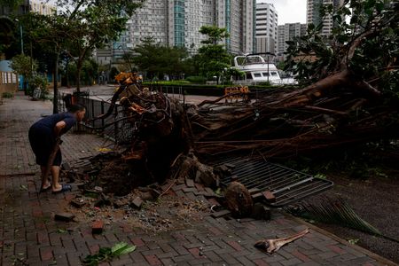 HONG KONG (Reuters) – Typhoon Saola made landfall in the southern Chinese province of Guangdong early on Saturday as violent winds lashed nearby Shenzhen, Hong Kong and Macau, leaving at least one dead and a trail of destruction and flooding in many areas.