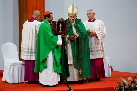 ULAANBAATAR (Reuters) -In an unprecedented event, Pope Francis and just about the entire Catholic population of a country were in the same room when he presided at a Mass in Mongolia’s capital on Sunday.