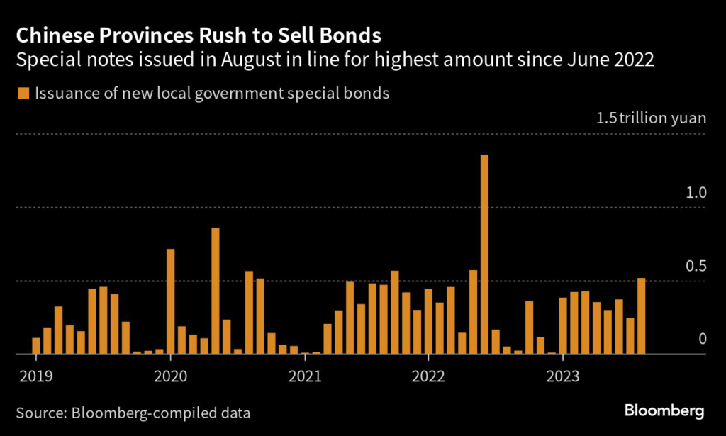 Officials set a September deadline for provinces to issue all of this year’s 3.8 trillion yuan ($520 billion) quota of new special bonds, and instructed them to put the cash into use by the end of October.