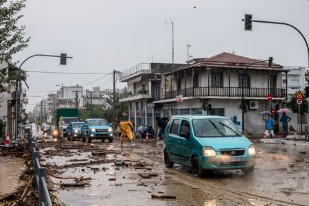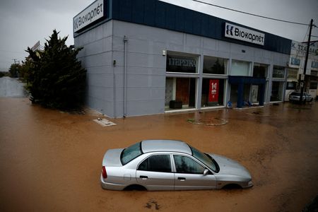 ATHENS (Reuters) – Torrential rains have flooded homes, businesses and roads in Greece and a man died after a wall collapsed in the bad weather, the fire brigade said on Tuesday.