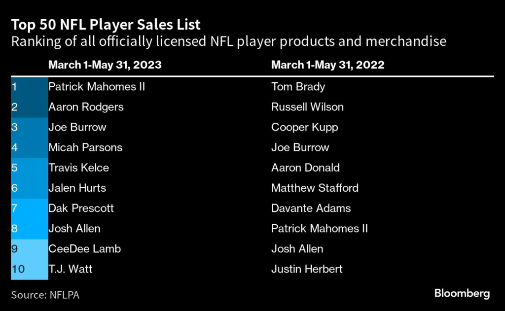 Rodgers, who was traded to the Jets in the off-season after a stellar career with the Green Bay Packers, only trails rival signal caller Patrick Mahomes in revenue generated by player-branded gear, according to figures from the NFL Player’s Association.