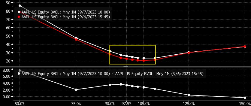 (Bloomberg) — The slide in Apple Inc.’s shares has taken some $200 billion off the technology giant’s market cap, boosting demand for options to protect against further declines.
