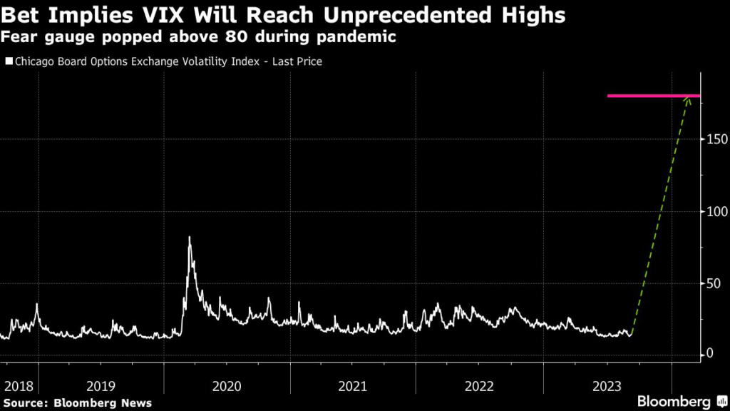 (Bloomberg) — The CBOE Volatility Index hasn’t popped above 35 all year, but some traders are betting it clocks 180 over the next few months.