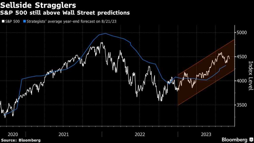 At this year’s peak in July, the S&P 500 exceeded the average Wall Street year-end target by the most since September 2020, according to data compiled by Bloomberg.