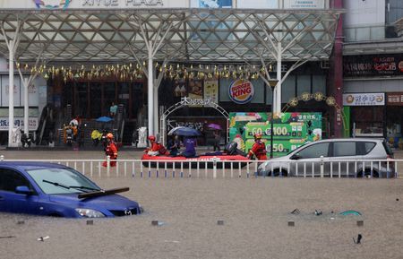 HONG KONG (Reuters) -The heaviest rain since records began 140 years ago drenched Asian financial hub Hong Kong on Friday, killing two people and injuring more than 140, state media reported, as unusually wet weather caused by typhoons brought more disruption to southern China.