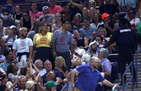 NEW YORK (Reuters) -Climate protesters halted the U.S. Open women’s semi-final between American Coco Gauff and Czech Karolina Muchova for nearly an hour on Thursday.