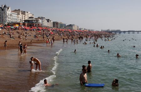 LONDON (Reuters) -Britain recorded its hottest day of 2023 so far on Saturday, with provisional data showing a high of 33.2 degrees Celsius (91.8 degrees Fahrenheit) at London’s Kew Gardens.