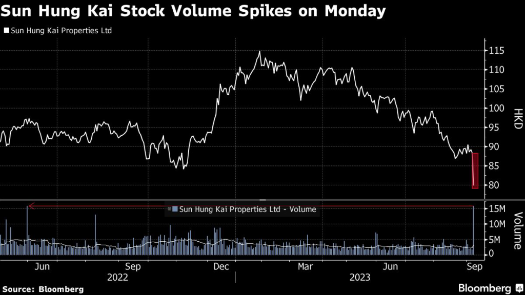 The selling came after Sun Hung Kai recorded a worse-than-expected 17% drop in full-year profit, another example of a local real estate market pressured by rising interest rates and a supply glut.