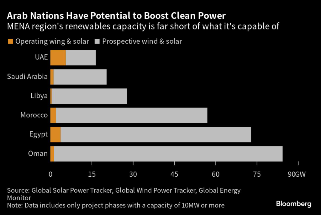 (Bloomberg) — The Middle East and North Africa region has raised renewables capacity by 50% in the past year and a similar boost is likely in 2024, but it still needs a 20-fold surge to replace cheap natural gas and avoid costly economic losses in the energy transition, according to a clean-energy think tank.