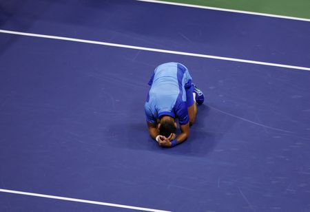 NEW YORK (Reuters) -Novak Djokovic would not let Daniil Medvedev spoil his date with history a second time as he battled past the Russian 6-3 7-6(5) 6-3 to win the U.S. Open on Sunday and equal Margaret Court’s record haul of 24 Grand Slams.