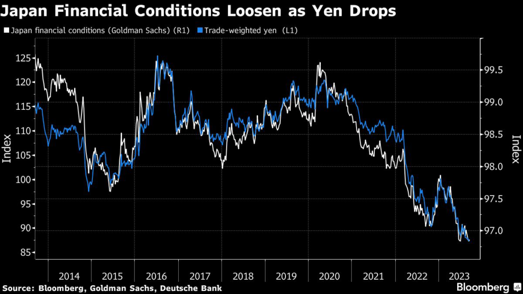 The yen’s drop has also loosened financial conditions at a time when the BOJ is trying to curb stimulus due to economic “green shoots.” In July, the central bank adjusted its yield curve control program and since then, JGB 30-year yields have shot up to 1.7%, the highest level since 2014, from about 1.2% at the end of June, though the positive impact on the currency has only been a recent development.