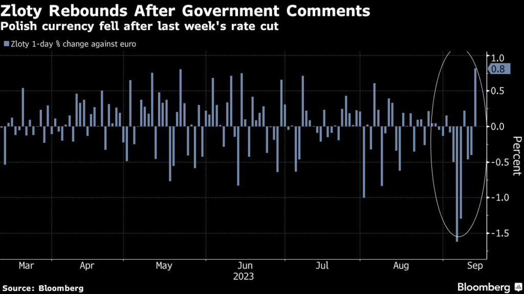 The zloty reversed the day’s losses after the comments to Bloomberg, paring its decline since the beginning of last week to just 1.2% against both the euro and the dollar.