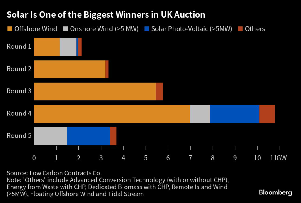Solar energy was one of the biggest winners of the latest UK government auction for renewables, accounting for more than half of the clean-energy capacity awarded.