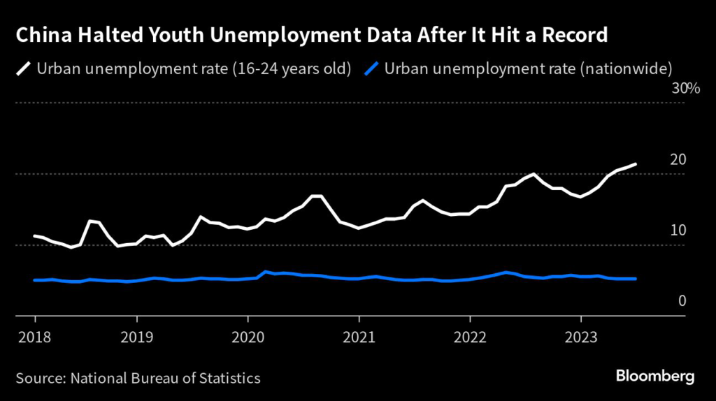 China unexpectedly paused publishing data on its soaring youth unemployment rate last month, saying it needed to iron out complexities in the numbers.