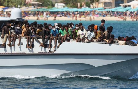 LAMPEDUSA, Italy (Reuters) -Italian Prime Minister Giorgia Meloni called on Friday for the European Union to act jointly “with a naval mission if necessary” to prevent migrants crossing the Mediterranean from North Africa.
