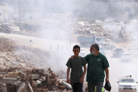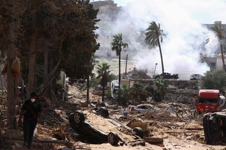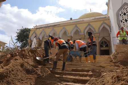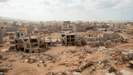 DERNA, Libya (Reuters) – Sabreen Blil was on her hands and knees atop the rubble of her brother’s house, the wind beating at her black robe as she clawed with her bare hands at the flattened masonry in hope of somehow digging to the family buried below.