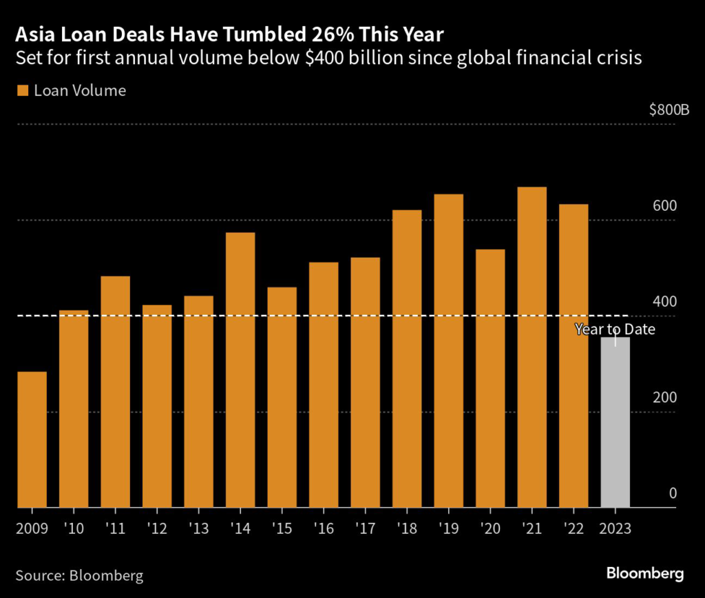 Asia has been no exception to a global decline in loan deals this year, an outcome of rising interest rates and concerns about slowing economic growth and China’s property debt crisis.