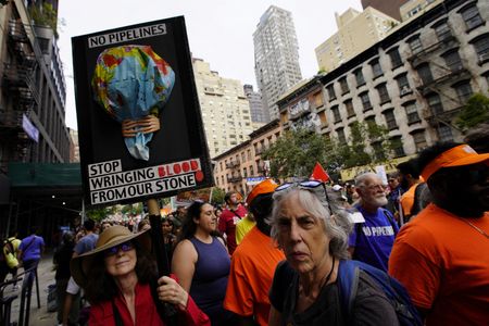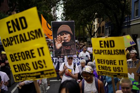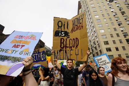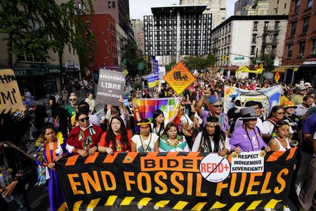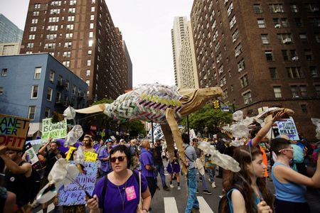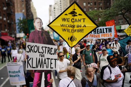 (Reuters) – Thousands of protesters kicked off “Climate Week” and filled the streets of Midtown, Manhattan, on Sunday ahead of the U.N. General Assembly this week, calling for President Joe Biden and world leaders to end fossil fuel use.