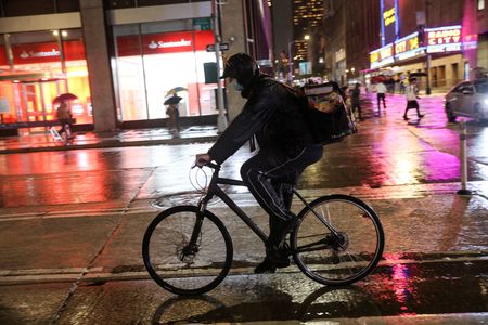 NEW YORK (Reuters) -A federal judge on Tuesday said DoorDash, Grubhub and Uber Eats can sue New York City over a law capping how much they can charge restaurants for delivering meals.