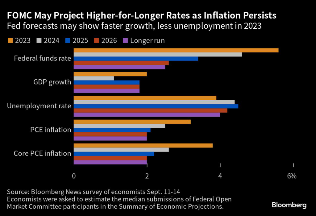 19-20 meeting in a range of 5.25% to 5.5%, a 22-year high. The rate decision and committee forecasts will be released at 2 p.m. in Washington. Chair Jerome Powell will hold a press conference 30 minutes later.