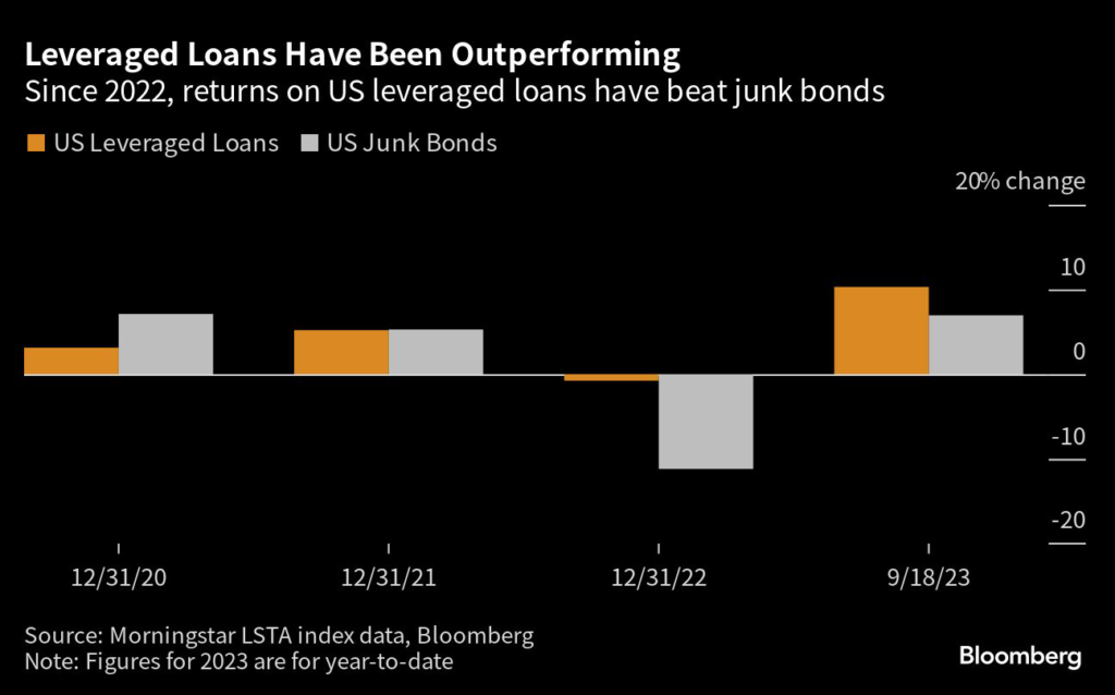 US leveraged loans have gained about 10% this year, while most fixed-rate bonds in the US have eked returns of around 2% or less, or even generated losses.