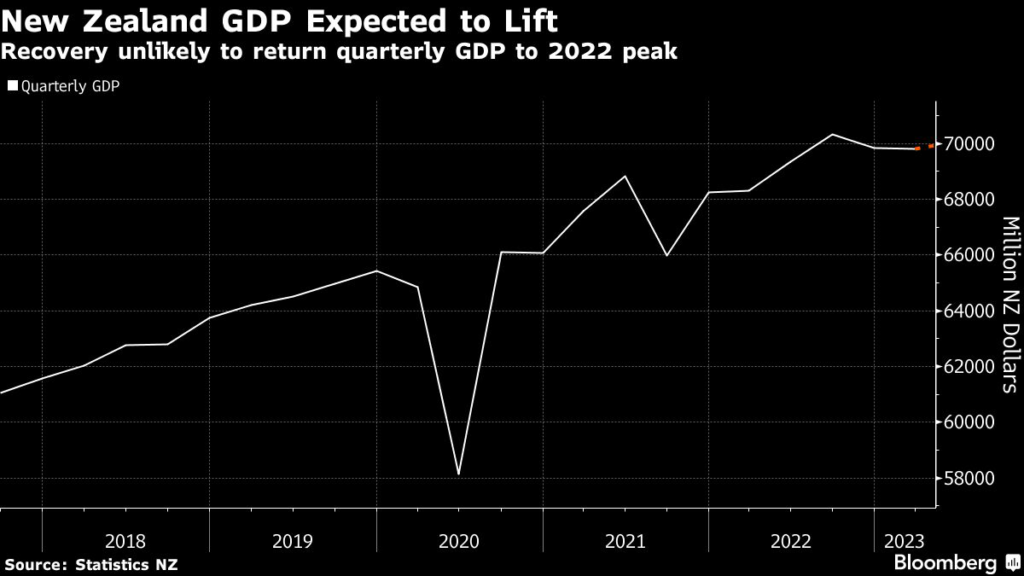 (Bloomberg) — New Zealand’s economy probably emerged from a shallow recession in the second quarter as a surge in immigration fueled growth.