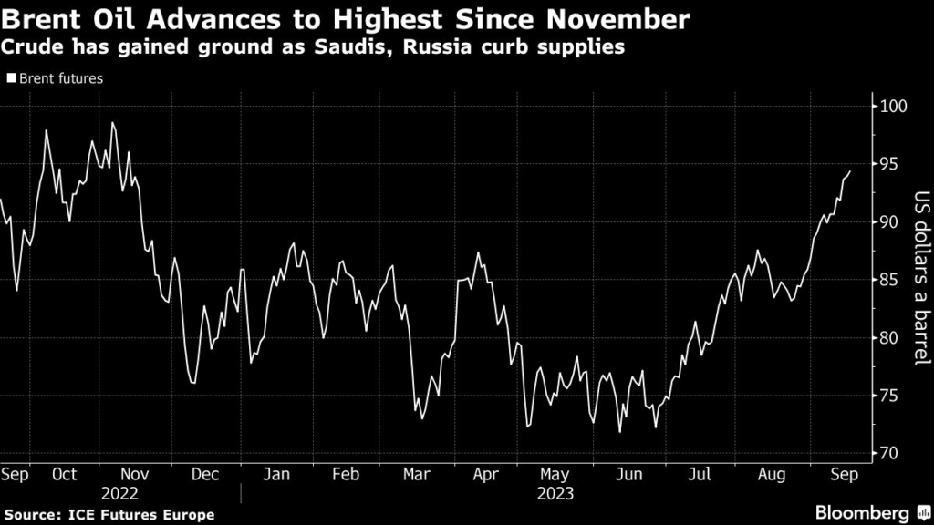 “The new upside target” sits near $95 for US futures, Dennis Kissler, senior vice president for trading at BOK Financial Securities, wrote in a note to clients.