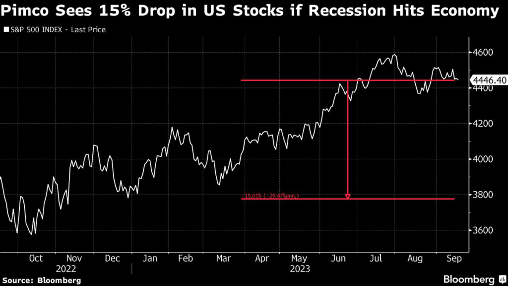 Equity investors are failing to factor in the chances of a recession while hazards, such as higher oil prices, could drive the S&P 500 Index down roughly 15%, the portfolio manager for multi-asset strategies at Pacific Investment Management Co.