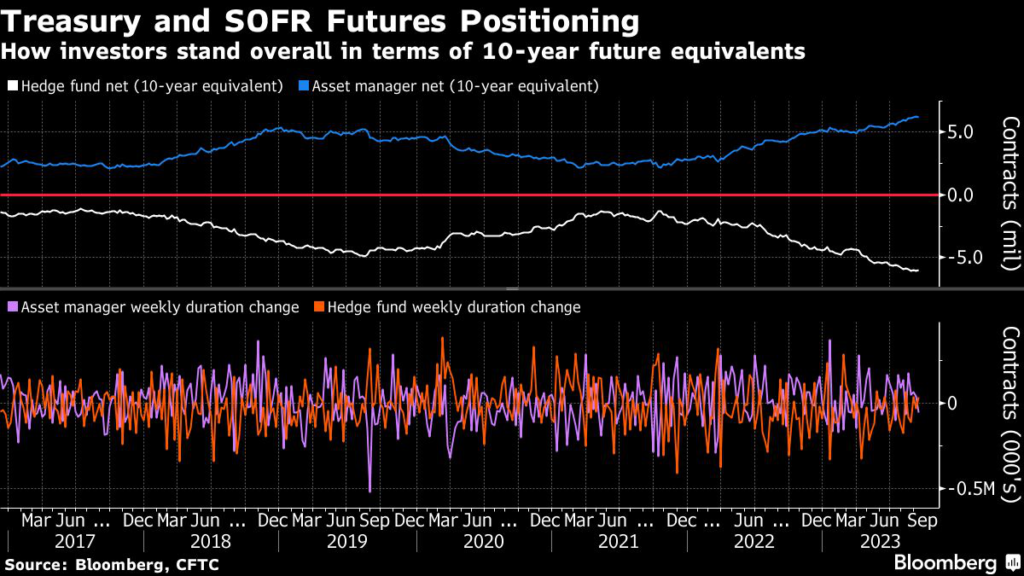 12, hedge funds cut their overall net short position by around 38,000 10-year note futures equivalents, while asset managers cut their overall net long exposure by approximately 51,000 10-year futures equivalents.