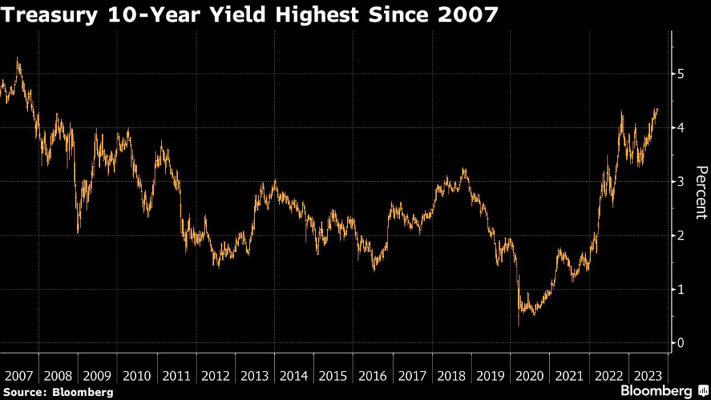 (Bloomberg) — US five- and 10-year yields rose to the highest levels since 2007 after hotter-than-anticipated inflation data in Canada and rising oil prices added to global concerns about resurgent price pressures.