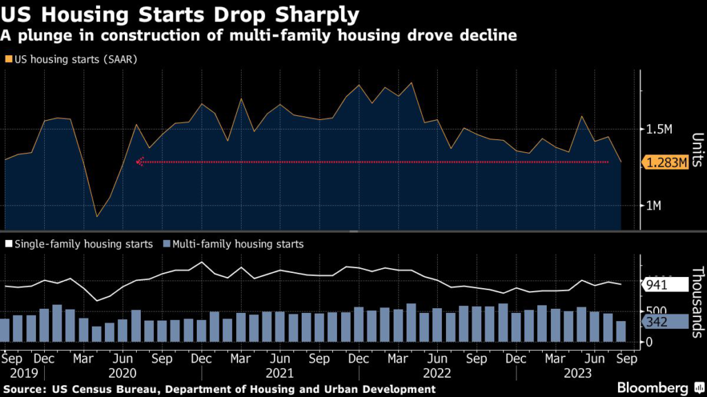 “Multifamily units drove the increase in housing permits in August as mortgage rates above 7% push many prospective buyers out of the market for single-family homes.”