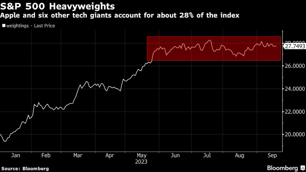 The seven now account for about 28% of the S&P 500’s $37 trillion market value, up from about 20% at the start of the year.