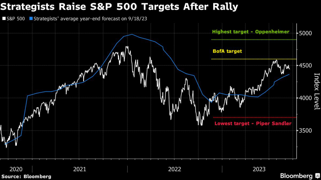 (Bloomberg) — Bank of America Corp.’s Savita Subramanian is the latest Wall Street strategist to boost her target for the S&P 500 after the sharp rally in 2023 left forecasts in the dust.