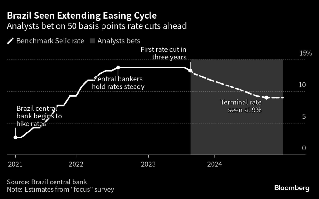 Central bankers led by Roberto Campos Neto kicked off their monetary easing campaign in August after holding rates steady at a six-year high for 12 months.