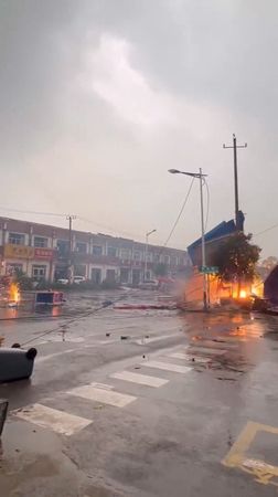 BEIJING (Reuters) -Chinese weather officials stepped up warnings about heavy rain and strong winds in several regions, state media said on Wednesday, a day after a violent tornado wreaked havoc in the eastern province of Jiangsu, killing 10 people.