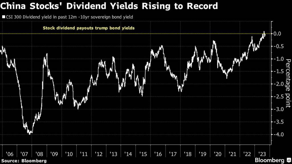Dividend payments by the CSI 300 Index members this year have exceeded the 1.27 trillion yuan paid out in 2022, according to data compiled by Bloomberg.