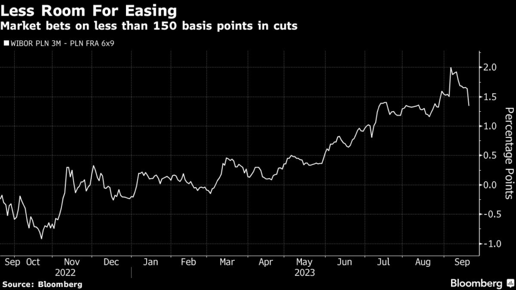 Meanwhile, forward rate agreements showed that traders are paring bets on the scale of Polish rate cuts to about 135 basis points over the next nine months from as much as 200 basis points earlier in September.