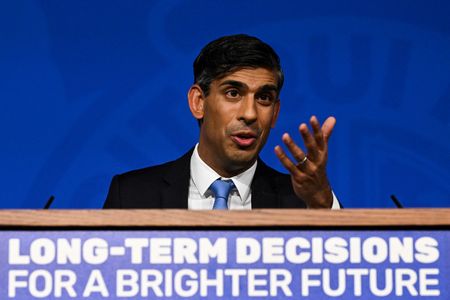 LONDON (Reuters) – British Prime Minister Rishi Sunak said on Wednesday the government would not force households to take energy efficiency measures as he announced new changes to some of its commitments to tackle climate change.