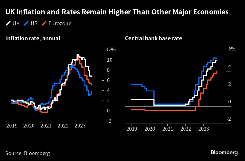 Either way, debate in the UK is shifting away from inflation fear to and toward how much the quickest increase in borrowing costs in three decades is damaging the economy.